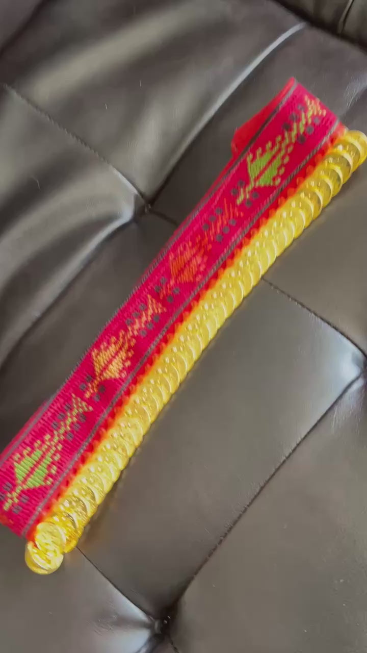 handmade headpiece with gold plated coins.
